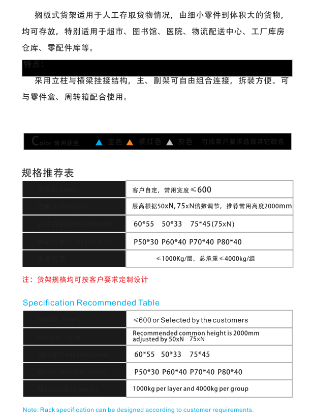 擱板式貨架適用于人工存取貨物情況,由細小零件到體積大的貨物,均可存放,特別適用于超市、圖書館、醫(yī)院、物流配送中心、工廠庫房倉庫、零配件庫等。